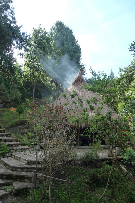 Nos alejamos de la ciudad y de la lluvia para reunirnos con Pedro en su "nuhe", sobre las alturas de Gachancipá, a 50 minutos de Bogotá. Lo encontramos revolcado en una hamaca, al lado del fuego, bajo la choza kogi construida por su padre.