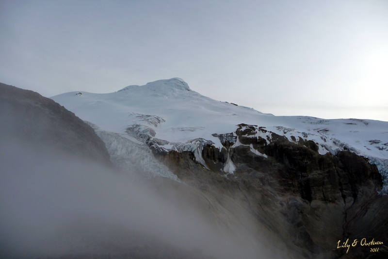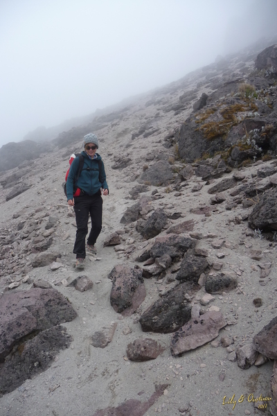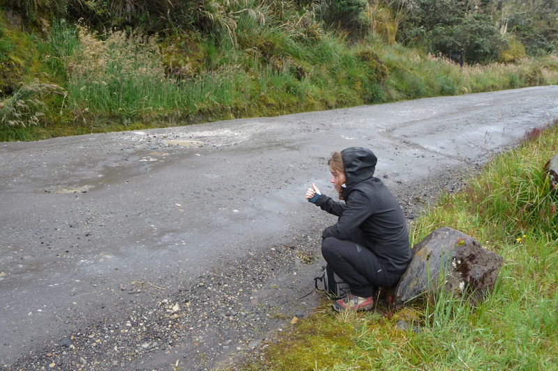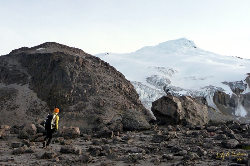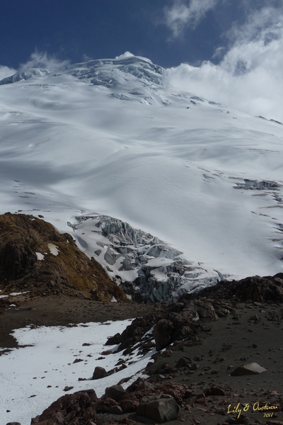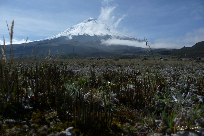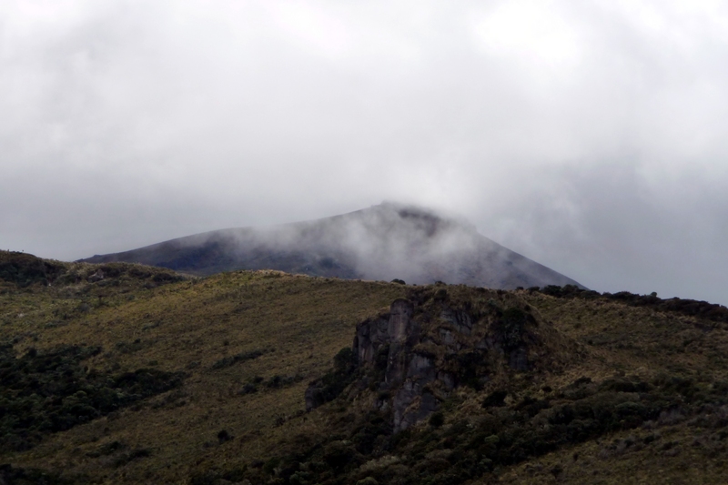 Après avoir attendu quelques heures que les nuages se déchirent, nous montons enfin au déco de Mundug. Petit site surplombant Patate, il n'offre pas des possibilités de vol extraordinaires mais offre un point de vue privilégié sur le Tungurahua et sur le Chimborazo, plus haut sommet équatorien. Nous décollons après les élèves, en fin de matinée et les conditions commencent à être un peu trop fortes pour ce site.