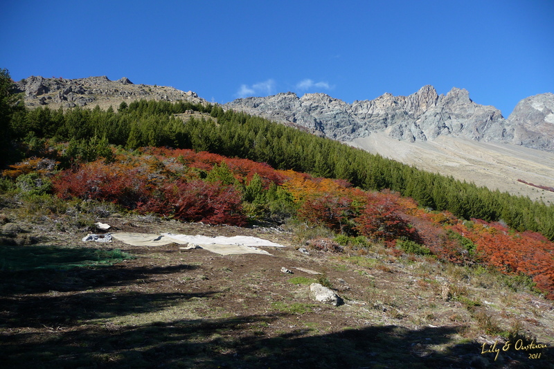 Par chance, le lendemain matin, alors que nous nous apprêtons à partir à pied jusqu'à l'estancia, un pick-up vient à notre secours. Il s'agit d'un braconnier et de sa famille en pleine chasse au guanaco. Après avoir tenté de réparer notre voiture avec des morceaux de durites coupés sur son propre moteur, notre dépanneur se propose de nous remorquer jusqu'au premier garage, c'est à dire à Trelew à plus de 100 kilomètres de là ! N'ayant pas de corde, nous fabriquons vite fait, à l'aide des sangles de serrage de nos voiles et de quelques flammes (morceaux de tissu de parapente dont on se sert pour voir la direction du vent), un système permettant de tracter la voiture sur la piste jusqu'à une estancia où nous empruntons une vraie corde. Les 80 kilomètres restant jusqu'à Trelew seront parcourus tranquillement, au gré des nombreux arrêts que nous faisons pour récupérer la viande des guanacos abattus par notre dépanneur. La chasse au Guanaco étant limitée à un animal par famille, notre ami se doit de faire vite mais surtout de ne prendre que les morceaux de valeur sur les bêtes chassées. Mathieu sera donc mis à contribution en tant que porteur de gibier, le tout en essayant de ne pas se faire repérer depuis la route ! Nous finissons quand même par arriver à Trelew, où le premier arrêt sera chez nos compagnons de route qui décident alors de nous inviter à manger avec eux une fois la voiture réparée. Bien sûr, trois européens qui négocient une réparation rapide sur une voiture de location un dimanche ne font pas le poids face à un garagiste capable de nous clouer là pour plusieurs jours, et nous nous retrouvons amputés d'une bonne partie du budget restant pour la fin du voyage.