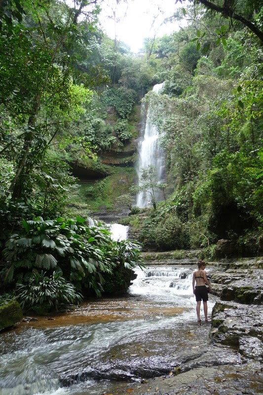 Avant de quitter Pereira, la famille Gutierrez nous fait découvrir un endroit isolé et peu connu. Entre Pereira et Armenia, dans les environs "del Manzano" se trouve une piscine naturelle d'eau (très) froide totalement sauvage. Apres quelques kilomètres de piste, nous traversons des champs transformés en marécages par les intempéries saisonnières, pour nous retrouver à la lisière d'une forêt tropicale d'altitude. Là, se trouve un joli "pozo" alimenté par une cascade. Ce sera l'occasion de prendre un bon bain rafraîchissant et de jouer aux robinsons. Entre les cris des singes hurleurs et ceux d'un perroquet, le dépaysement est total.